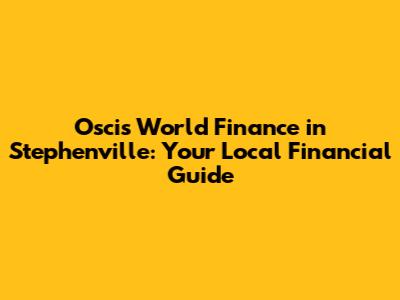 Understanding Oscis World Finance and Its Role in Stephenville