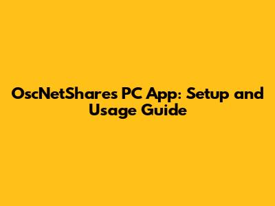 OscNetShares PC App: Setup And Usage Guide