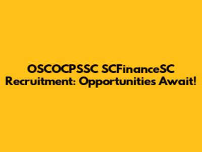 OSCOCPSSC SCFinanceSC Recruitment: Opportunities Await!