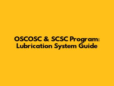 OSCOSC & SCSC Program: Lubrication System Guide