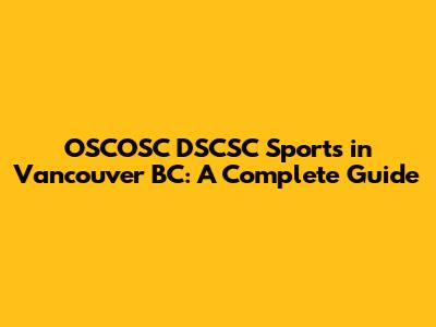OSCOSC DSCSC Sports In Vancouver BC: A Complete Guide