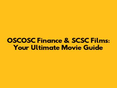OSCOSC Finance & SCSC Films: Your Ultimate Movie Guide