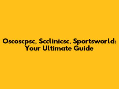 Oscoscpsc, Scclinicsc, Sportsworld: A Comprehensive Guide