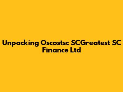 Oscostsc SCGreatest SC Finance Ltd: A Deep Dive
