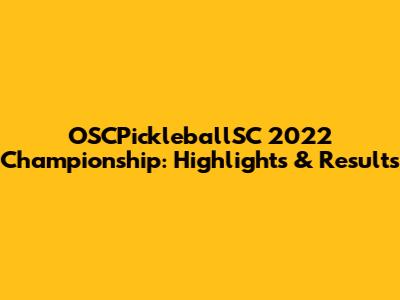 OSCPickleballSC 2022 Championship: Highlights & Results