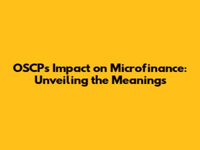 OSCP's Impact On Microfinance: Unveiling The Meanings