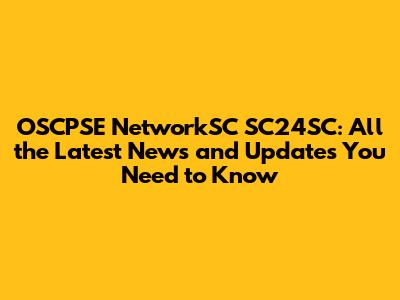 OSCPSE NetworkSC SC24SC: Latest News & Updates