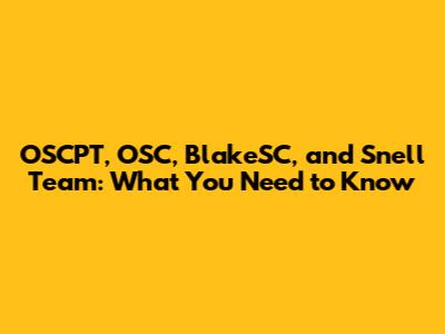 OSCPT, OSC, BlakeSC, And Snell Team: What You Need To Know