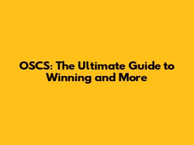 OSCS: The Ultimate Guide To Winning And More