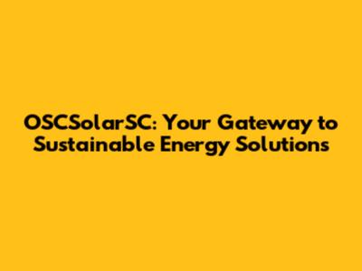 OSCSolarSC: Your Gateway To Sustainable Energy Solutions