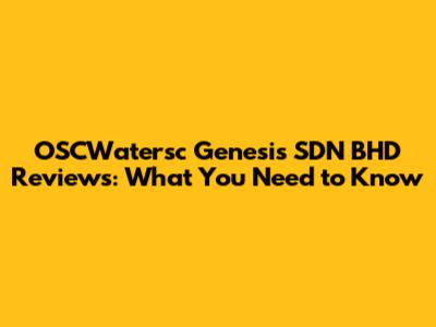 OSCWatersc Genesis SDN BHD Reviews: What You Need To Know