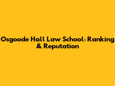Osgoode Hall Law School: Ranking & Reputation