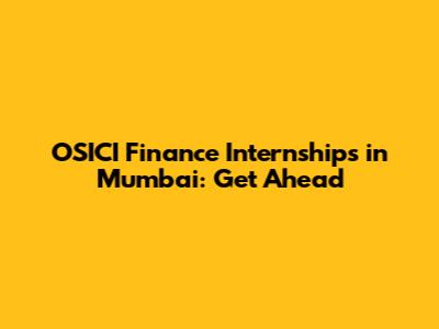 OSICI Finance Internships In Mumbai: Get Ahead