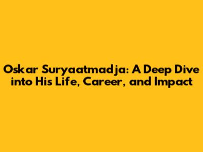 Oskar Suryaatmadja: Biography, Career, And Legacy