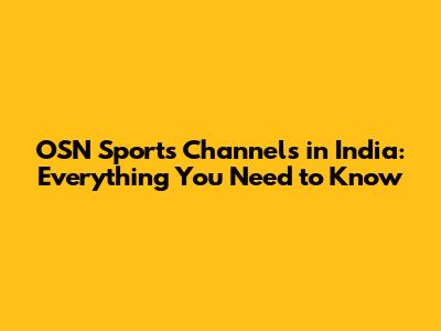 OSN Sports Channels In India: Everything You Need To Know