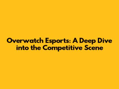 Overwatch Esports: A Deep Dive Into The Competitive Scene