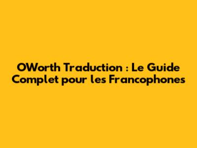 OWorth Traduction : Le Guide Complet Pour Les Francophones