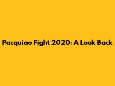 Pacquiao's Last Fight: A 2020 Throwback