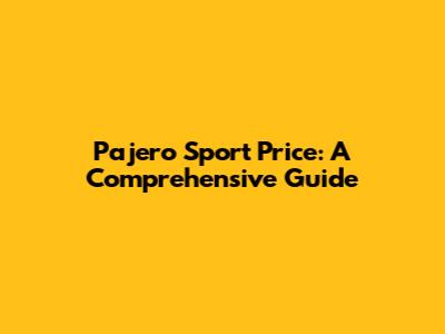 Pajero Sport Price: A Comprehensive Guide