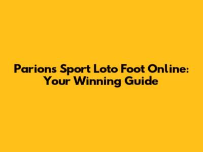 Parions Sport Loto Foot Online: Your Winning Guide