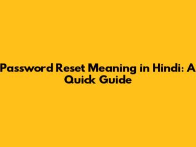 Password Reset Meaning In Hindi: A Quick Guide