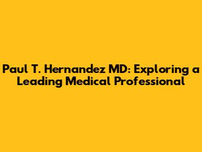 Hey guys, let's dive into the world of Paul T. Hernandez MD, a name you might have come across in the medical field. This isn't just about a doctor; it's about a professional whose impact spans across various aspects of healthcare. We'll explore his background, areas of expertise, and the contributions he's made. Buckle up, because we're about to embark on a journey through the career and influence of this prominent figure.