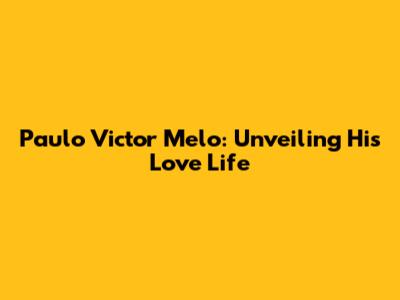 Paulo Victor Melo: Unveiling His Love Life