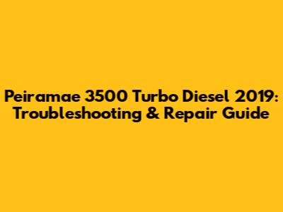 Peiramae 3500 Turbo Diesel 2019: Troubleshooting & Repair