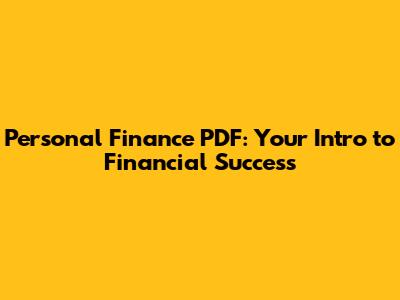 Personal Finance PDF: Your Intro To Financial Success