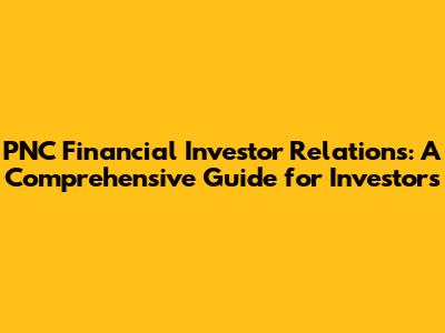 PNC Financial Investor Relations: Your Comprehensive Guide