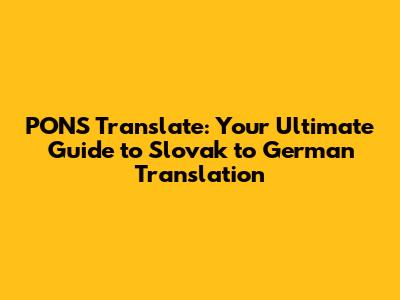 PONS Translate: Slovak To German Translation Guide