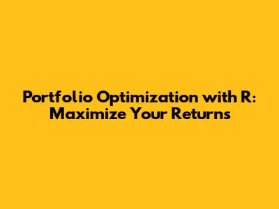Portfolio Optimization With R: Maximize Your Returns
