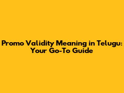 Promo Validity Explained In Telugu: A Simple Guide