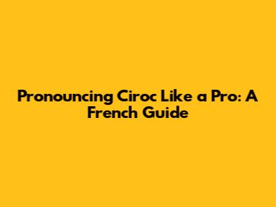 Pronouncing Ciroc Like A Pro: A French Guide