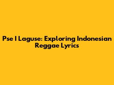Pse I Laguse: Exploring Indonesian Reggae Lyrics