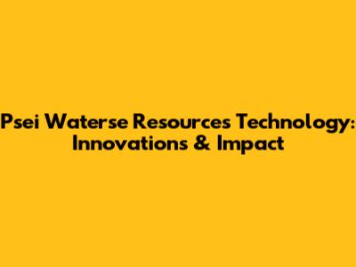 Psei Waterse Resources Technology: Innovations & Impact
