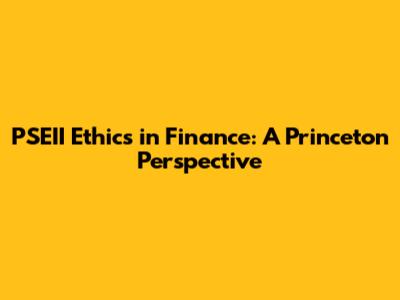 PSEII Ethics In Finance: A Princeton Perspective