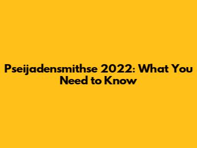 Pseijadensmithse 2022: What You Need To Know