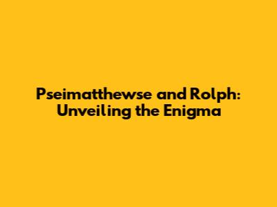 Pseimatthewse And Rolph: Unveiling The Enigma