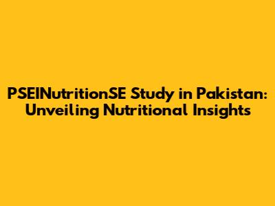 PSEINutritionSE Study In Pakistan: Unveiling Nutritional Insights