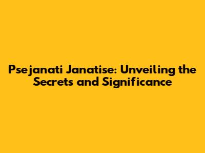 Psejanati Janatise: A Comprehensive Guide