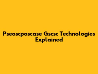 Pseoscposcase Gscsc Technologies Explained