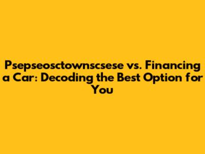 Hey there, future car owners! Choosing the right path to get those keys in your hands can feel like navigating a maze. One of the biggest decisions you'll face is whether to shell out a lump sum upfront (psepseosctownscsese, as we'll call it for simplicity), or opt for the monthly payment route of car financing. Let's break down these two options, explore their pros and cons, and help you figure out which one is the perfect fit for your lifestyle and financial situation. It's time to equip you with the knowledge to make a savvy decision! Think of it like this: are you the type who likes to pay the full price right now, or spread the cost over time? Both approaches have their advantages, and understanding them is crucial before you sign on the dotted line. Let's dive in and unravel the mysteries of psepseosctownscsese versus financing, ensuring you cruise away with confidence.