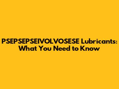 What Exactly Are PSEPSEPSEIVOLVOSESE Lubricants?