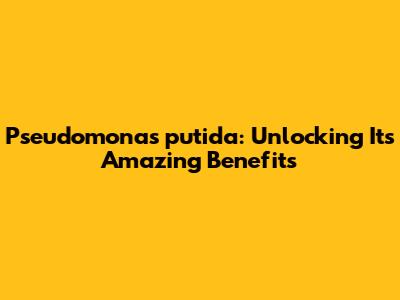 Pseudomonas Putida: Unlocking Its Amazing Benefits