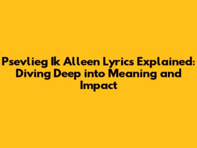 Hey music lovers! Let's dive deep into the heart of the song "Psevlieg Ik Alleen" (Am I Flying Alone) by the artist with the same name. This song is more than just a collection of catchy melodies; it's a journey through emotions, struggles, and reflections. In this article, we'll break down the lyrics, explore the themes, and understand why this song resonates with so many people. Get ready to uncover the layers of meaning behind "Psevlieg Ik Alleen" and discover its powerful message.