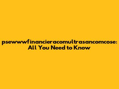 Psewwwfinancieracomultrasancomcose: All You Need To Know