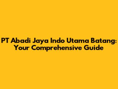 PT Abadi Jaya Indo Utama Batang: Your Comprehensive Guide