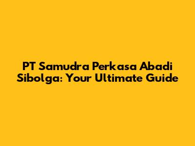 PT Samudra Perkasa Abadi Sibolga: A Comprehensive Guide