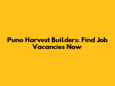 Puno Harvest Builders: Find Job Vacancies Now